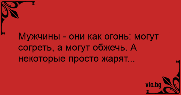 Мужчины - они как огонь: могут согреть, а могут обжечь. А некоторые просто жарят...