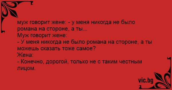 муж говорит жене: - у меня никогда не было романа на стороне, а ты...
