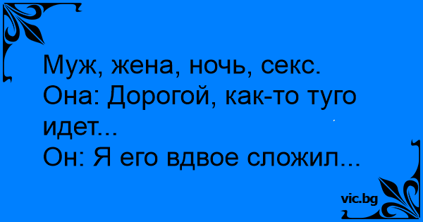 Она: Дорогой, как-то туго идет...
