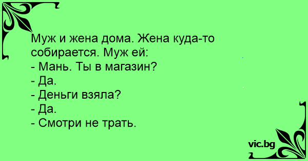 Муж и жена дома. Жена куда-то собирается. Муж ей: