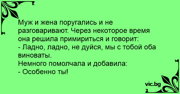 Муж и жена поругались и не разговаривают. Через некоторое время она решила примириться и говорит: