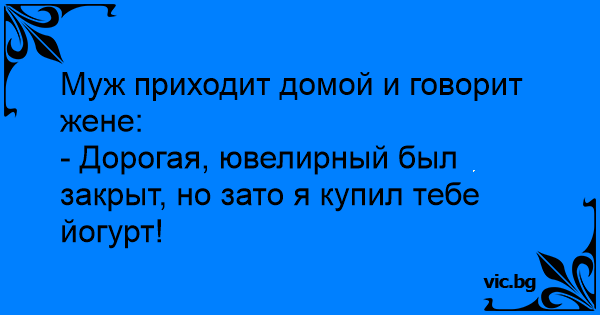 - Дорогая, ювелирный был закрыт, но зато я купил тебе йогурт!