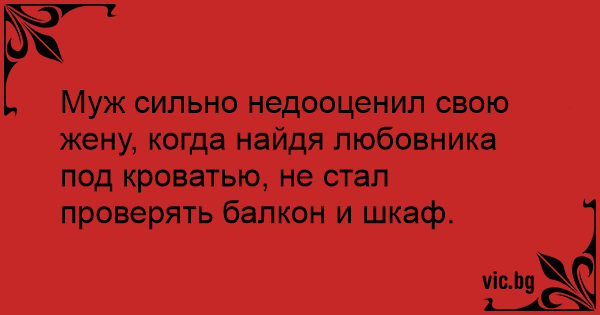 Муж сильно недооценил свою жену, когда найдя любовника под кроватью, не стал проверять балкон и шкаф.