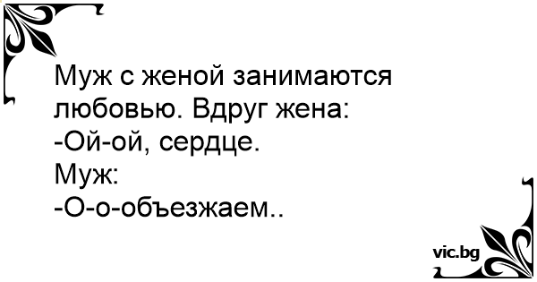 Муж с женой занимаются любовью. Вдруг жена: