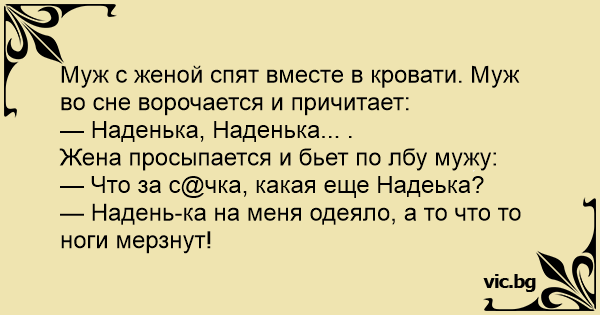 Муж с женой спят вместе в кровати. Муж во сне ворочается и причитает: