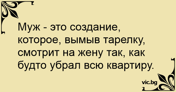 Муж - это создание, которое, вымыв тарелку, смотрит на жену так, как будто убрал всю квартиру.