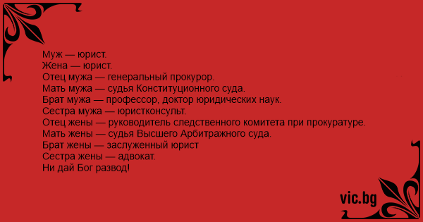 Жена — юрист.