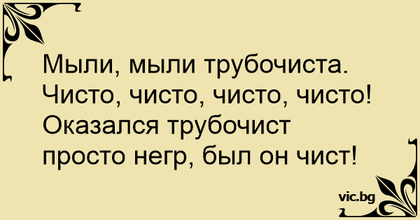 Мыли, мыли трубочиста. Чисто, чисто, чисто, чисто!