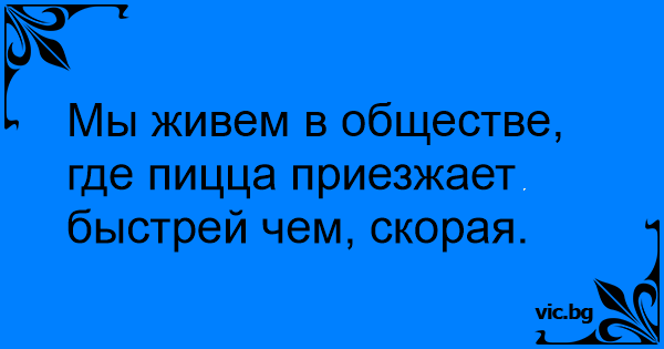 Мы живем в обществе, где пицца приезжает быстрей чем, скорая.
