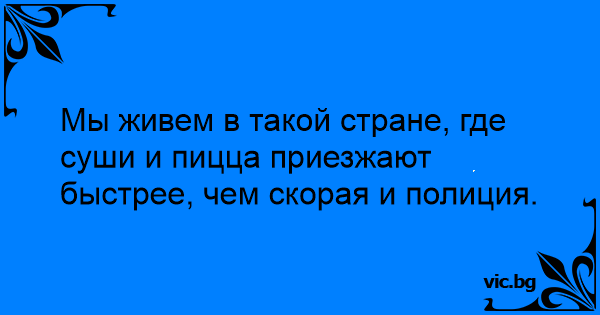 Мы живем в такой стране, где суши и пицца приезжают быстрее, чем скорая и полиция.