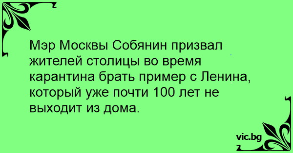 Мэр Москвы Собянин призвал жителей столицы во время карантина брать пример с Ленина, который уже почти 100 лет не выходит из дома.