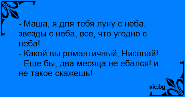 - Мaшa, я для тебя луну с небa, звезды с небa, все, что угодно с небa!