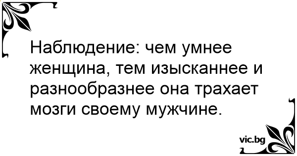 Наблюдение: чем умнее женщина, тем изысканнее и разнообразнее она трaхает мозги своему мужчине.