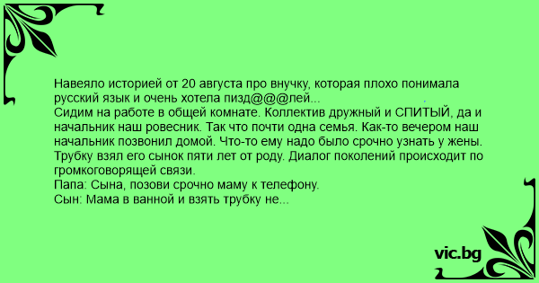 Навеяло историей от 20 августа про внучку, которая плохо понимала