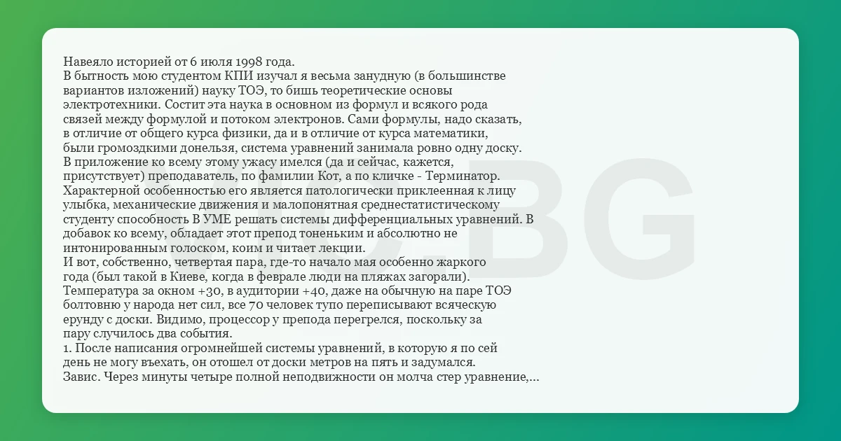 присутствует) преподаватель, по фамилии Кот, а по кличке - Терминатор.