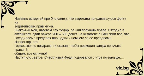 Навеяло историей про блондинку, что вырезала понравившуюся фотку из водительских прав мужа.
