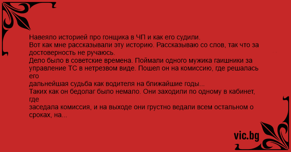 - Ну давай, рассказывай - сколько выпил, зачем сел за руль и т.д.