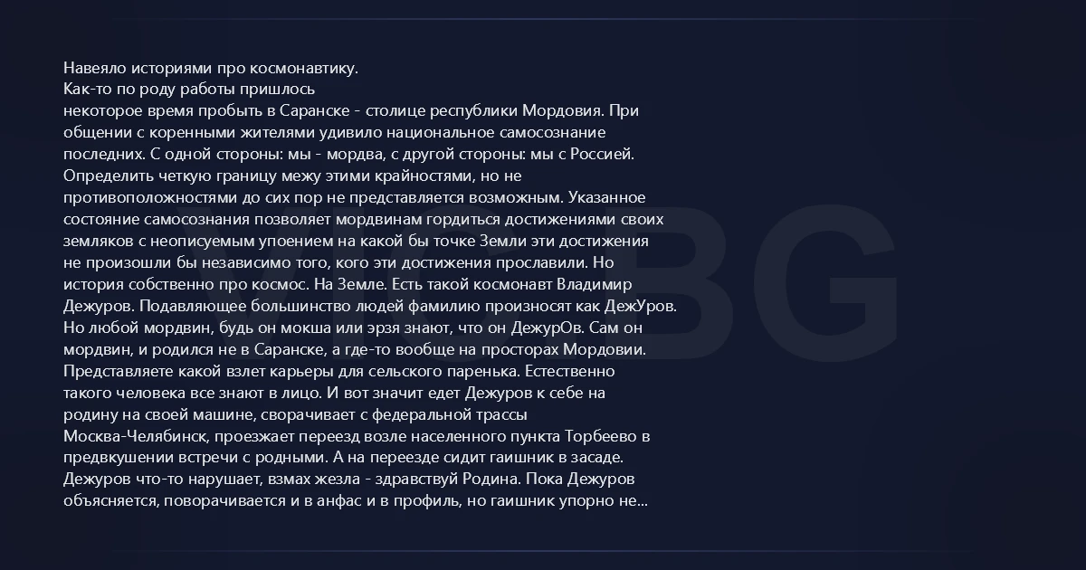 же космонавт Дежуров". Гаишник говорит, мол, дофига вас тут таких