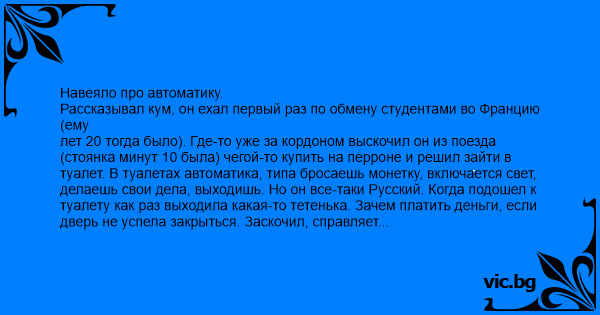 Рассказывал кум, он ехал первый раз по обмену студентами во Францию (ему