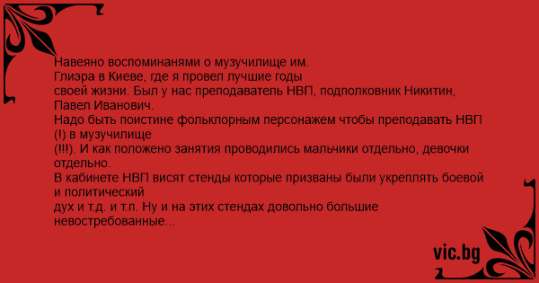 Надо быть поистине фольклорным персонажем чтобы преподавать НВП (!) в музучилище