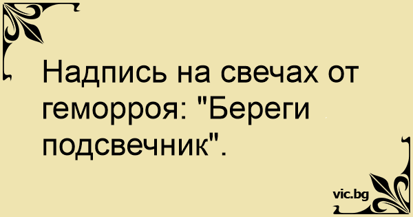Надпись на свечах от геморроя: "Береги подсвечник".