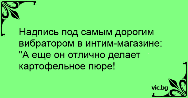 Надпись под самым дорогим вибратором в интим-магазине: "А еще он отлично делает картофельное пюре!