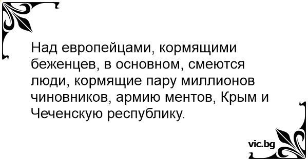 Над европейцами, кормящими беженцев, в основном, смеются люди, кормящие пару миллионов чиновников, армию ментов, Крым и Чеченскую республику.