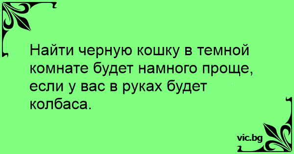Найти черную кошку в темной комнате будет намного проще, если у вас в руках будет колбаса. 57 0 0 Анекдоты