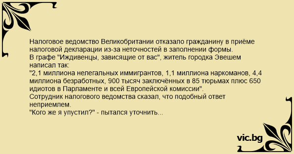 В графе "Иждивенцы, зависящие от вас", житель городка Эвешем написал так: