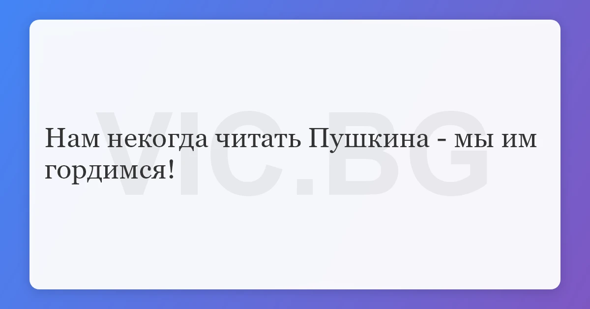 Нам некогда читать Пушкина - мы им гордимся!