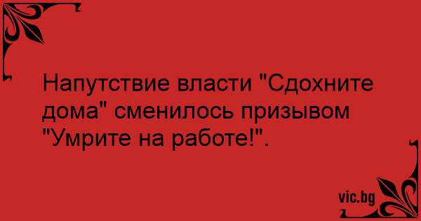 Напутствие власти "Сдохните дома" сменилось призывом "Умрите на работе!".
