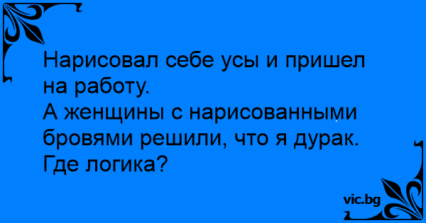 - Сегодня пришел на работу с нарисованными усами. Женщины с нарисованными бровями сказали мне, что я дурак.