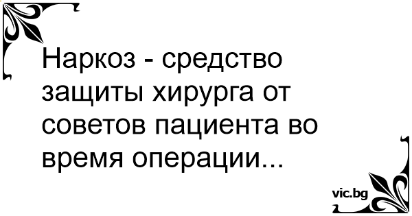 Наркоз - средство защиты хирурга от советов пациента во время операции...