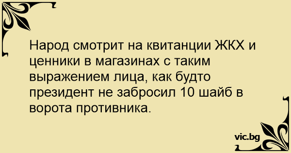 Народ смотрит на квитанции ЖКХ и ценники в магазинах с таким выражением лица, как будто президент не забросил 10 шайб в ворота противника.