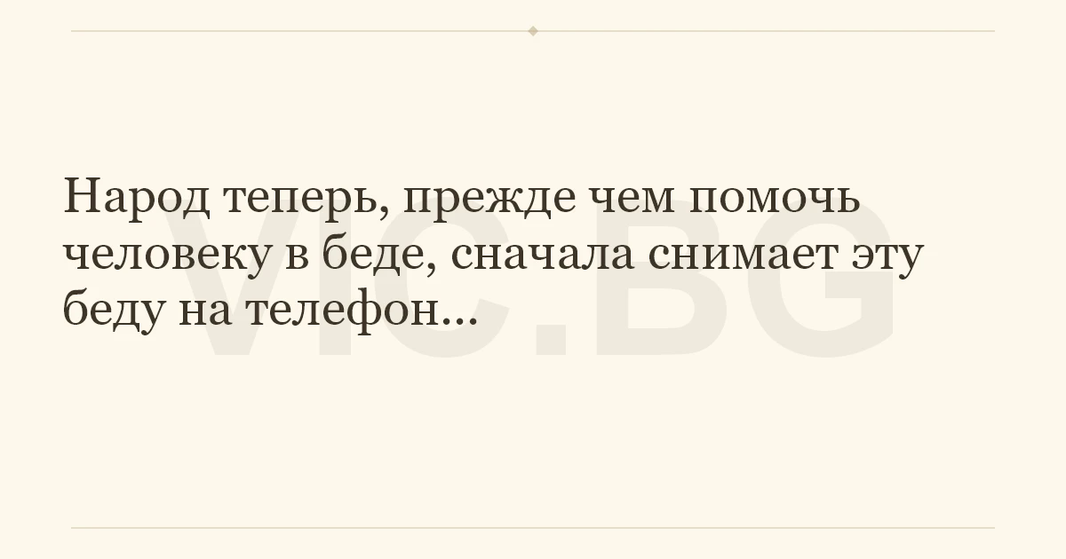 Народ теперь, прежде чем помочь человеку в беде, сначала снимает эту беду на телефон...