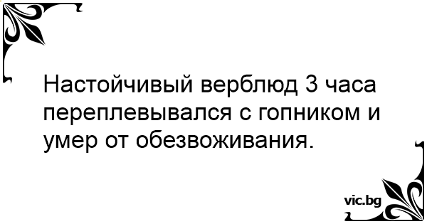 Настойчивый верблюд 3 часа переплевывался с гопником и умер от обезвоживания.