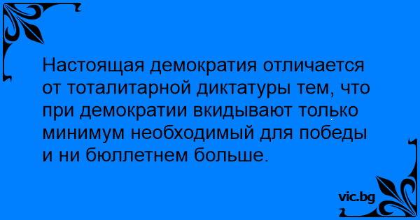 Настоящая демократия отличается от тоталитарной диктатуры тем, что при демократии вкидывают только минимум необходимый для победы и ни бюллетнем больше.
