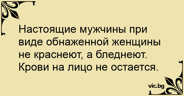 Настоящие мужчины при виде обнаженной женщины не краснеют, а бледнеют.