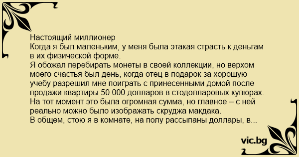 Настоящий миллионер Когда я был маленьким, у меня была этакая страсть к деньгам в их физической форме.