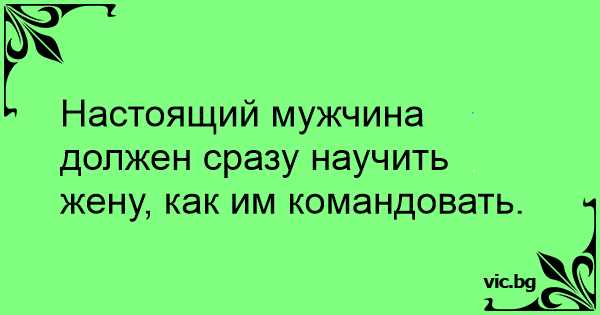 Настоящий мужчина должен сразу научить жену, как им командовать.