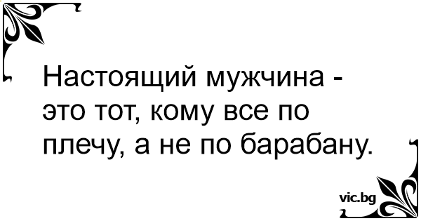 Настоящий мужчина - это тот, кому все по плечу, а не по барабану.