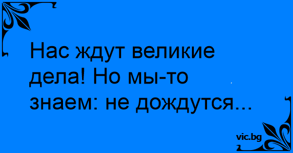 Нас ждут великие дела! Но мы-то знаем: не дождутся...