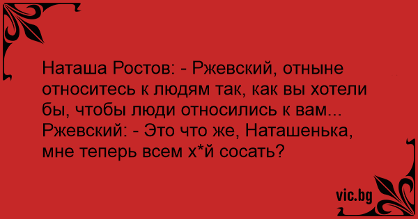 Ржевский: - Это что же, Наташенька, мне теперь всем хуй сосать?