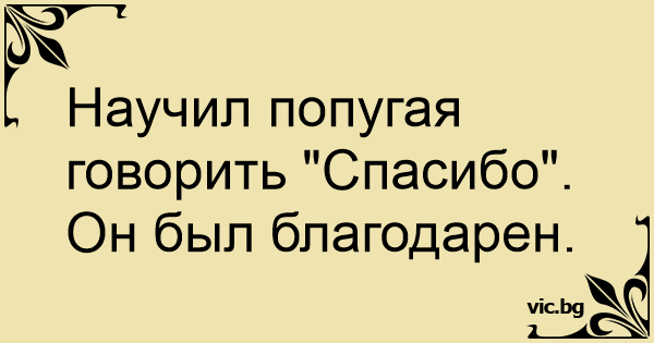 Научил попугая говорить "Спасибо". Он был благодарен.
