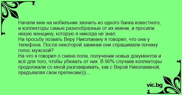 На что я говорил о смене пола, получении новых документов и всё для того, чтобы убежать от них. В 90% случаев коллекторы продолжали со мной разговаривать, как с Верой Николаевной, предъявляя свои претензии)))