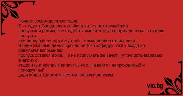 студентку и арендую пропуск у нее. На вахте - непроходимый и неподкупный