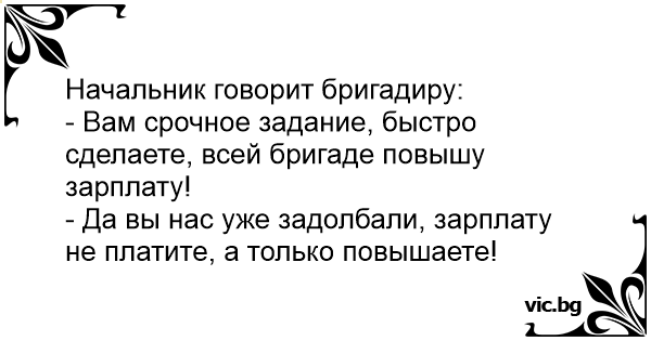 - Вам срочное задание, быстро сделаете, всей бригаде повышу зарплату!