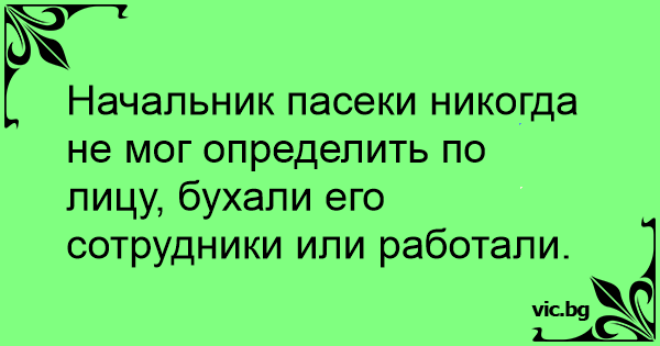 Начальник пасеки никогда не мог определить по лицу, бухали его сотрудники или работали.