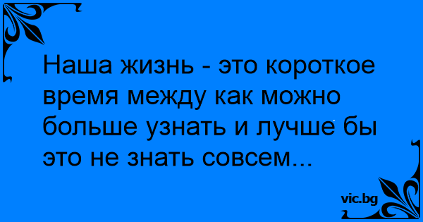 Наша жизнь - это короткое время между как можно больше узнать и лучше бы это не знать совсем...