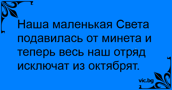 Наша маленькая Света подавилась от минета и теперь весь наш отряд исключат из октябрят.